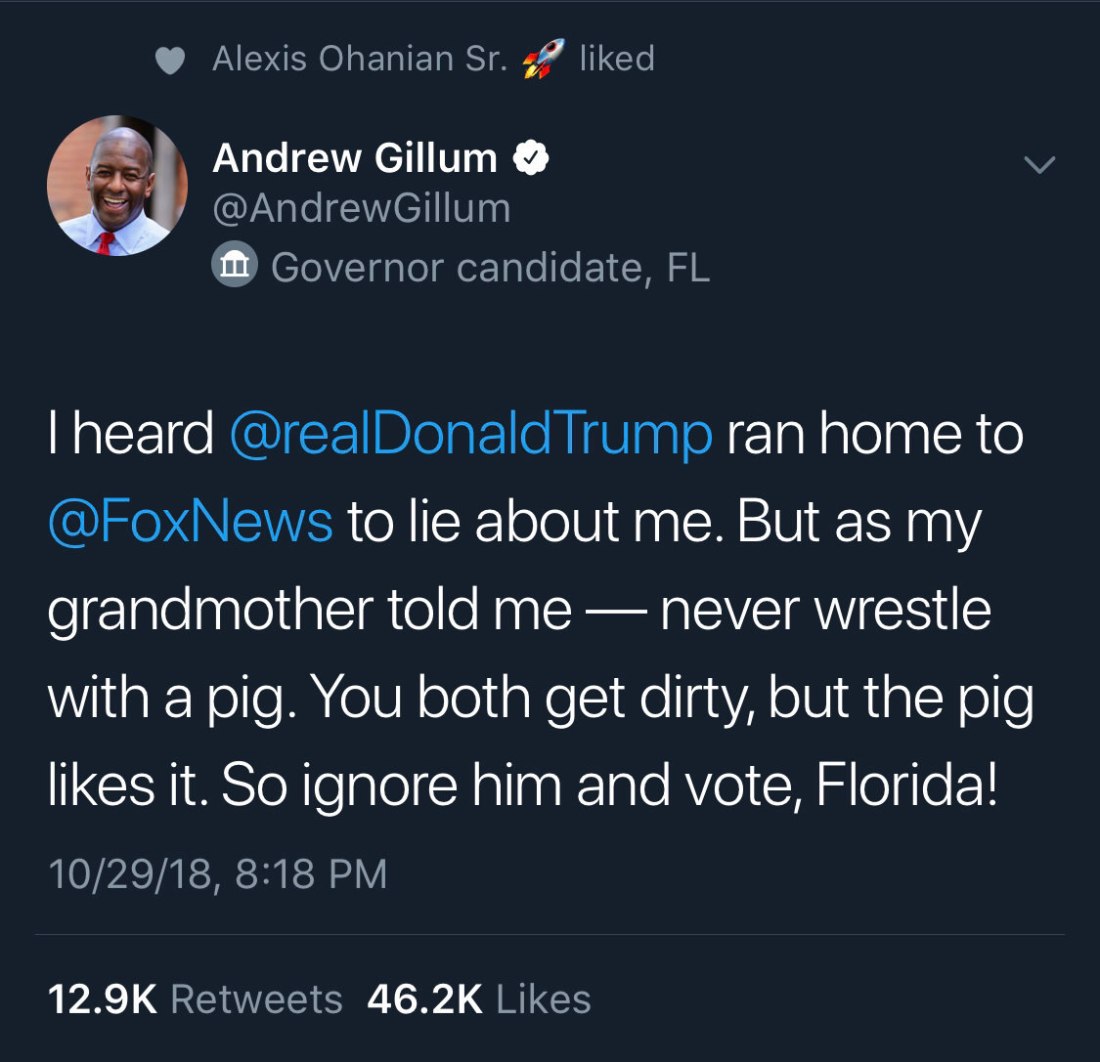 Gillum from Richmond Heights; no f’s given. And this ain’t the first time he’s clapbacked at Trump. 🙌🏽🙌🏽🙌🏽