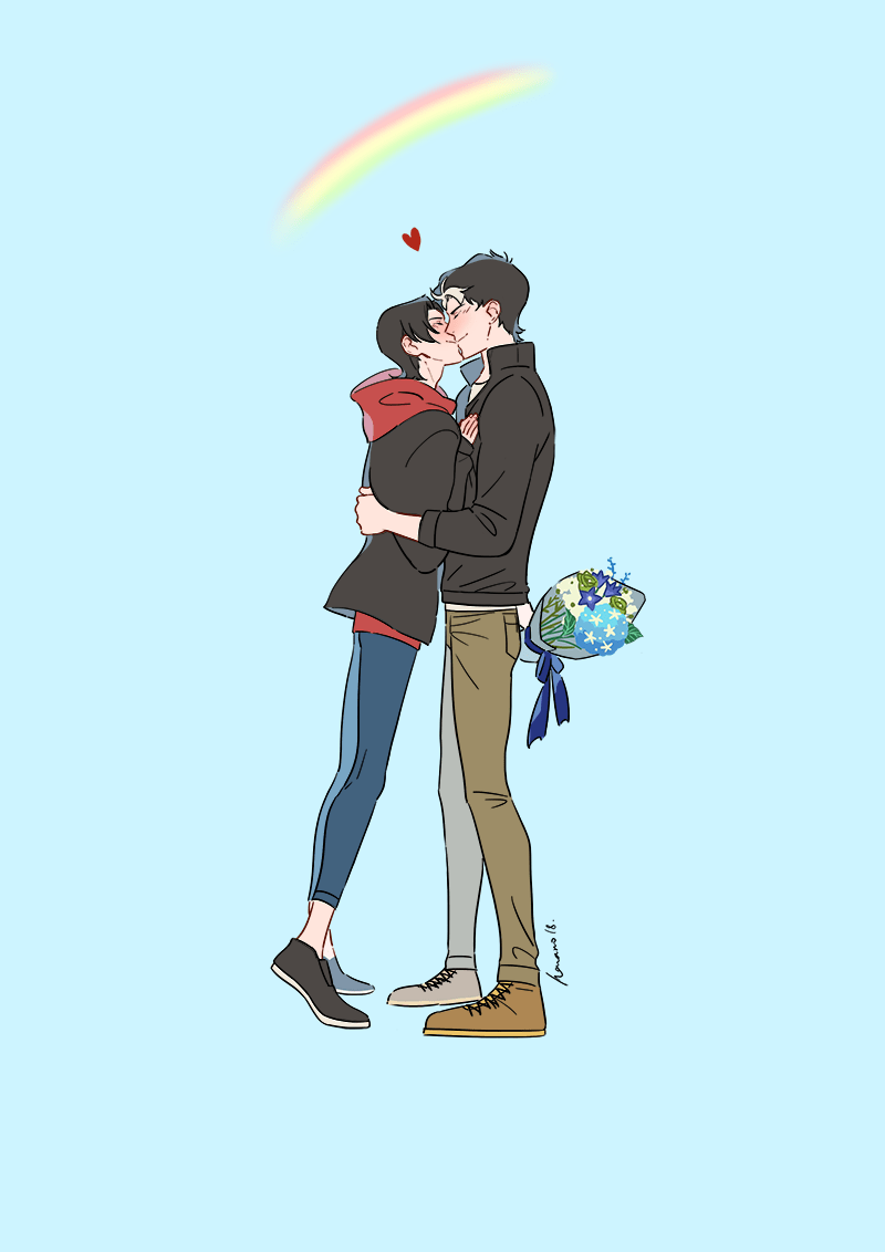 Jason rises his gaze slowly, taking in the faded high waisted jeans and red bomber jacket-one that doesn’t do much to hide a pale shirtless torso-before he makes it to the face of the person standing in front of him. It’s a boy about Jason’s age. He’s a pretty thing, with pouty lips, midnight hair, and icy blue eyes. He doesn’t blink once while Jason stares at him in disbelief.