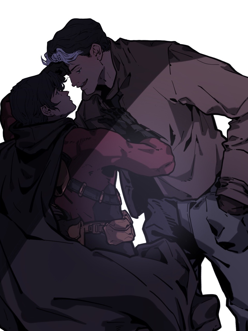 So together, they take on the streets of west side Gotham. Kicking ass, taking names, saving civilians, and trading quips. Jason shows Tim he can be trusted to have his back in a fight. He shows Tim that he trusts Tim to watch his back in a fight. They never disappoint each other. He makes a point of not letting silences stretch too long, making Tim laugh at even jokes that would earn Jason nasty looks from the rest of the family, and feeling victorious when Tim’s replies come quicker and his laughs more frequent.